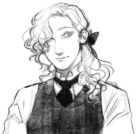 An initial, rougher version of the drawing, featuring some B&W/limited palette rendering.• Headshot $10